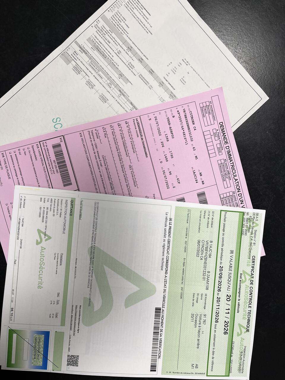 * Demande d'immatriculation et Carpass.